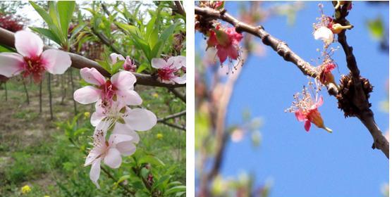 在我負責的項目駐地隔壁,住著一位精神矍鑠的7旬老人。近日有暇去他辛勤耕耘的苗圃參觀,有幾株桃花吸引了我的眼球,花已即將敗落,看到的是一朵朵已經脫落僅?;ㄍ泻突ㄐ牡牡蛑x殘花。