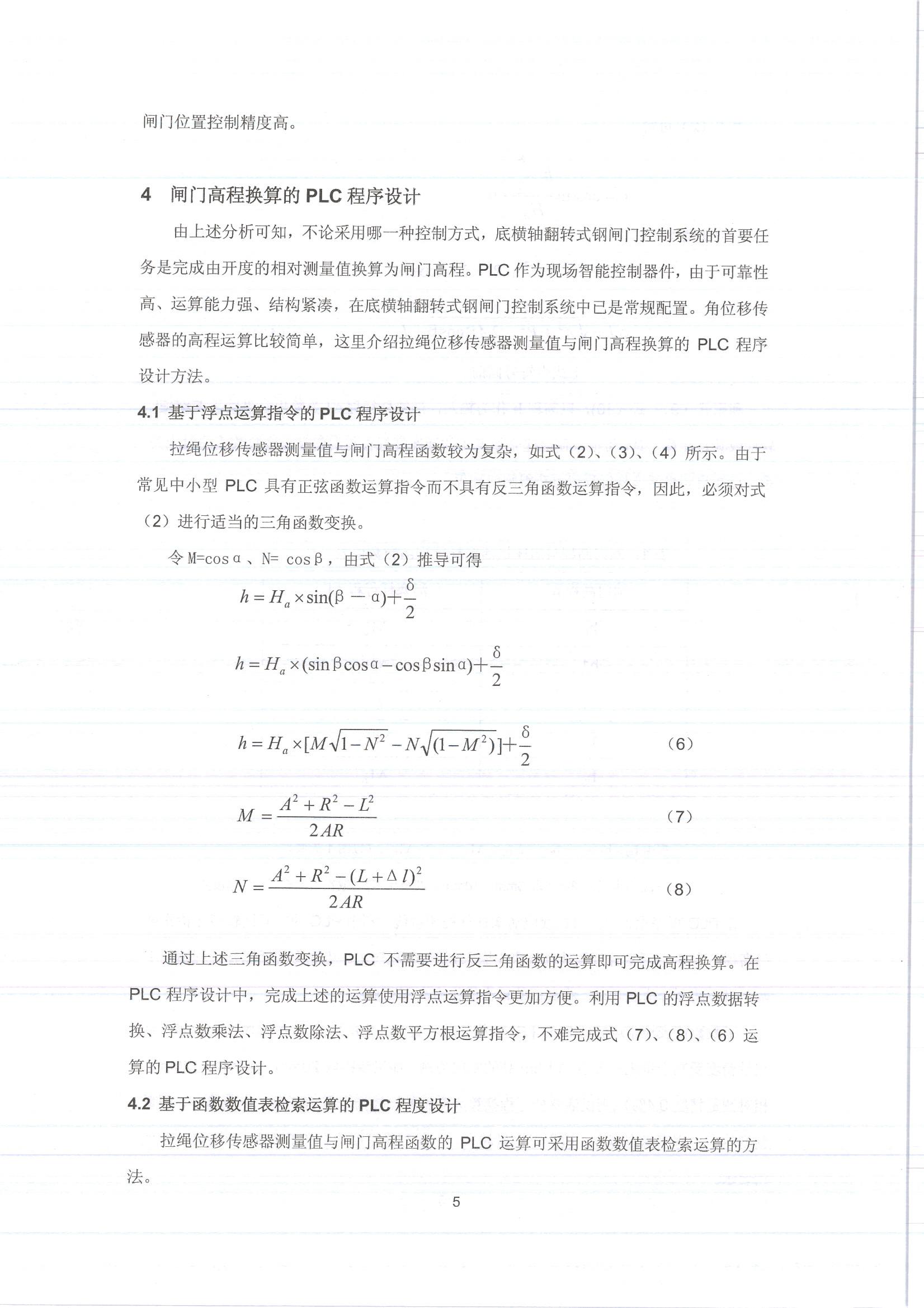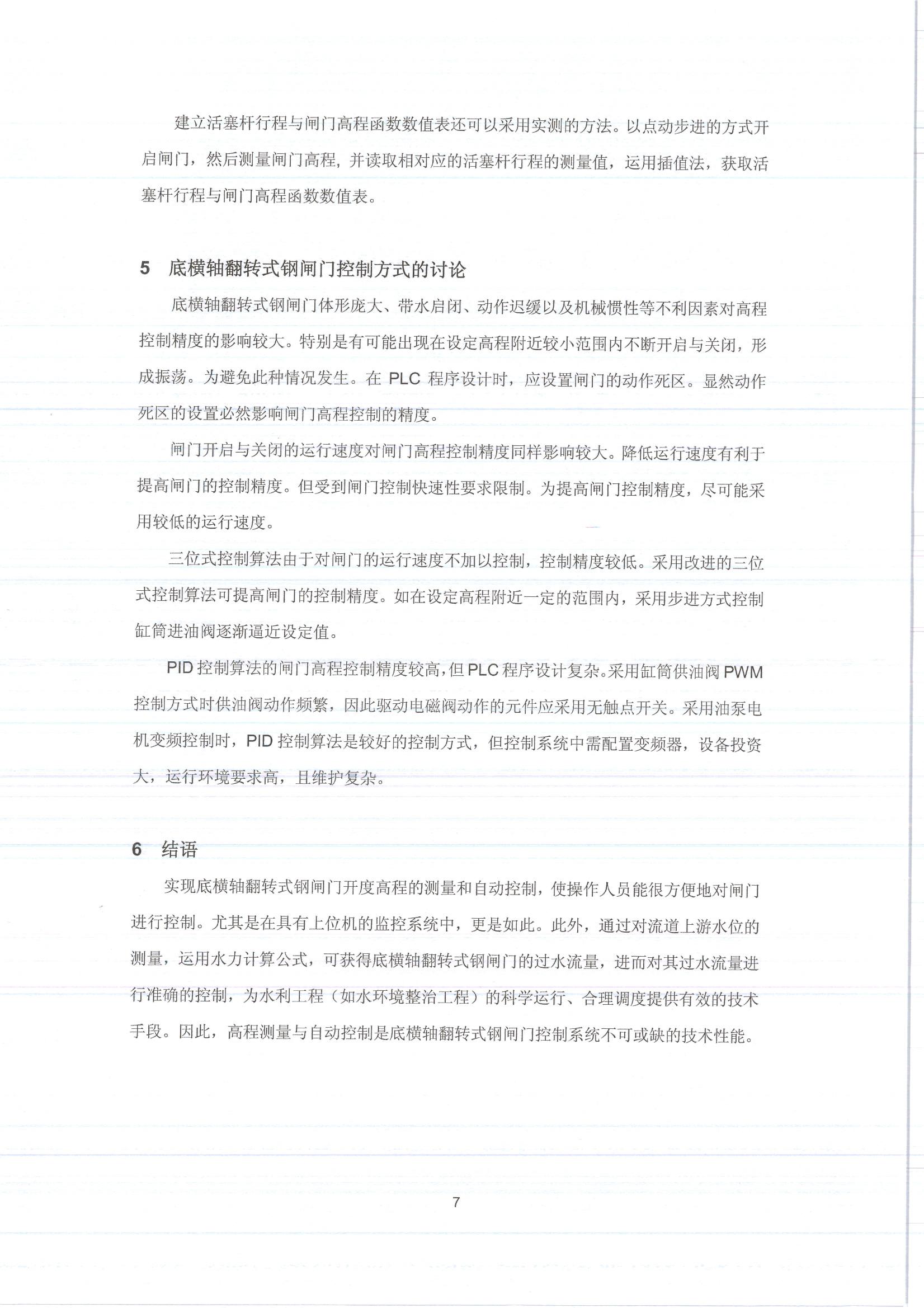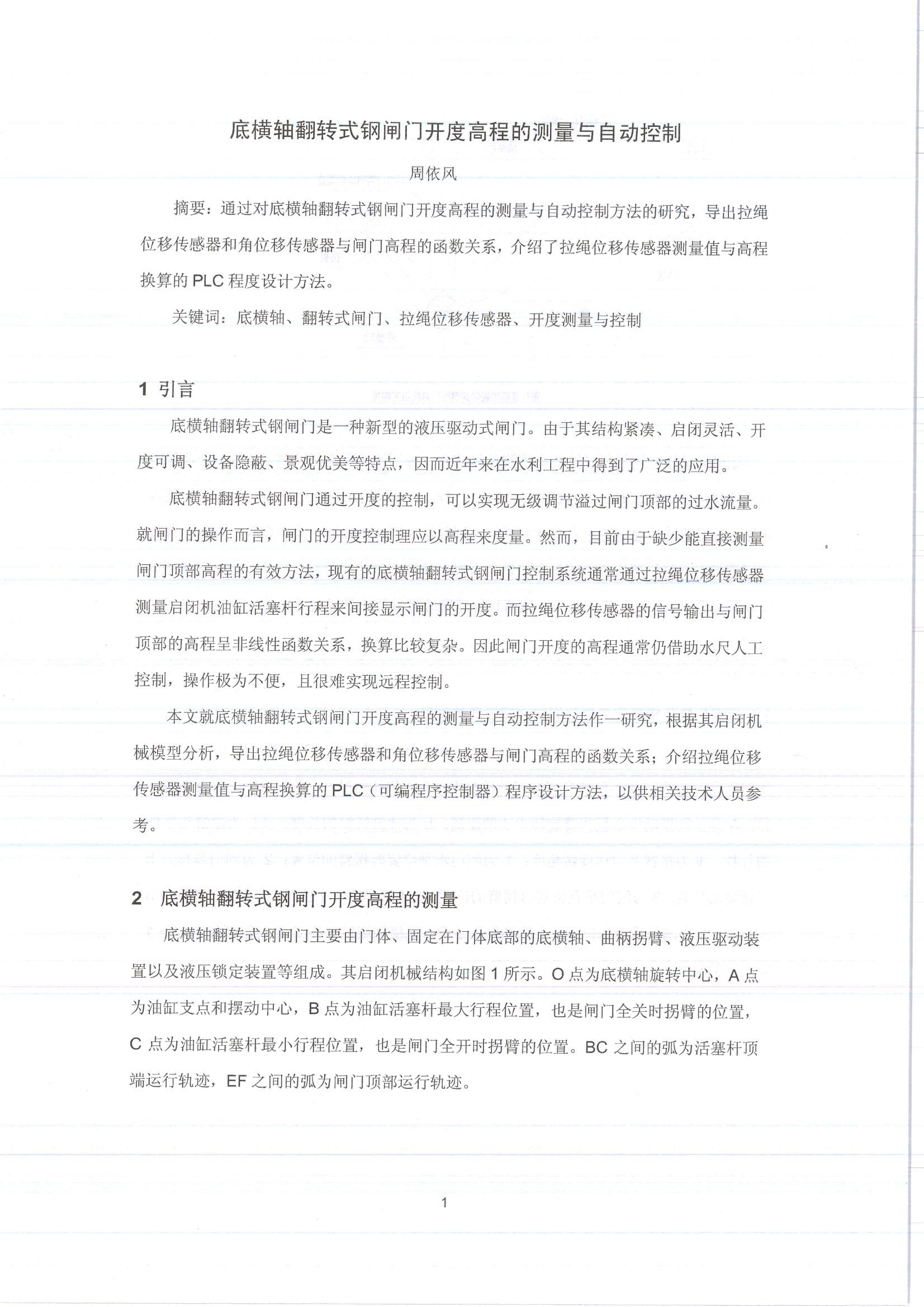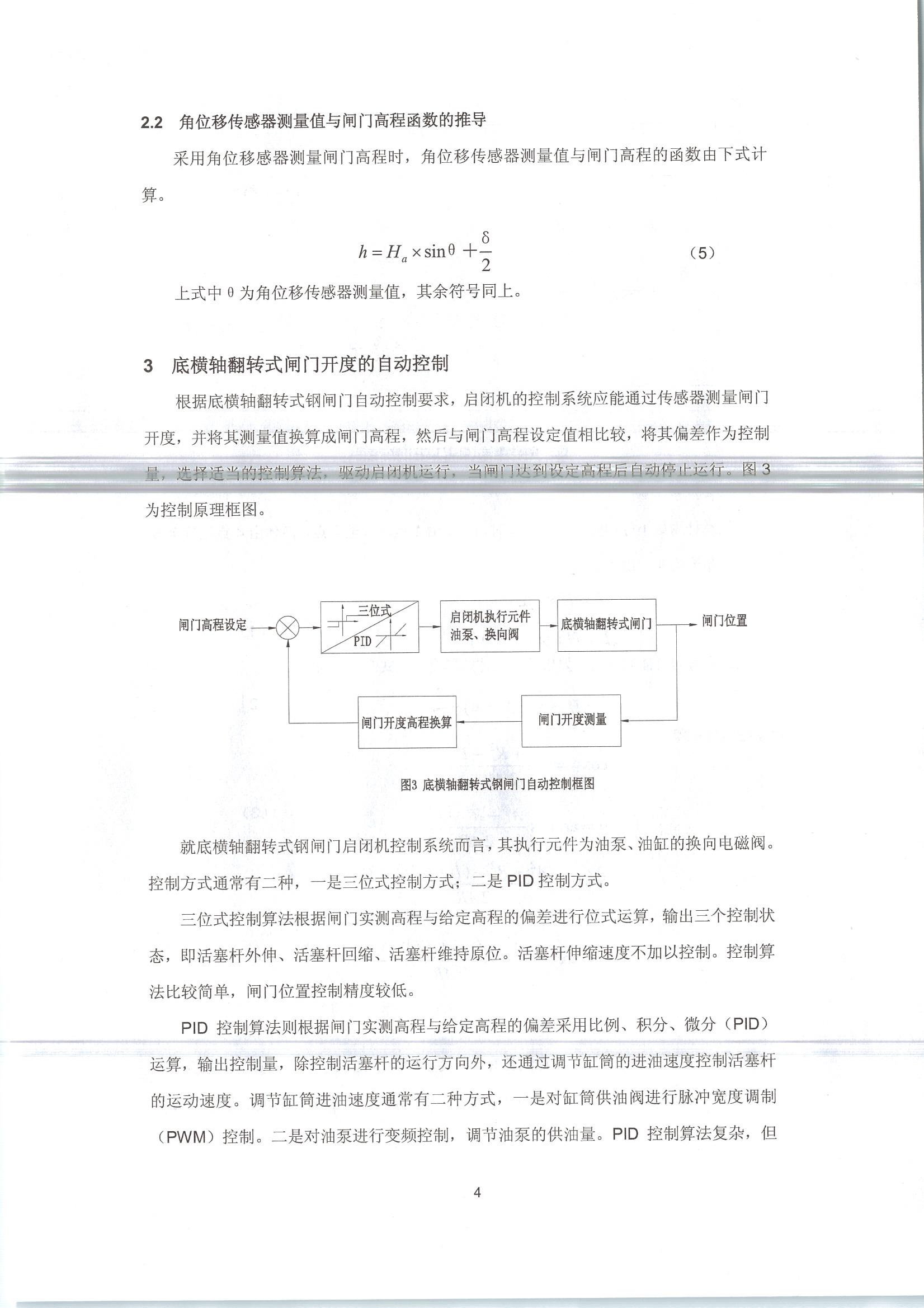 底橫軸翻轉(zhuǎn)式鋼閘門開度高程的測量與自動控制