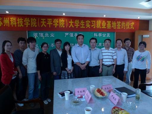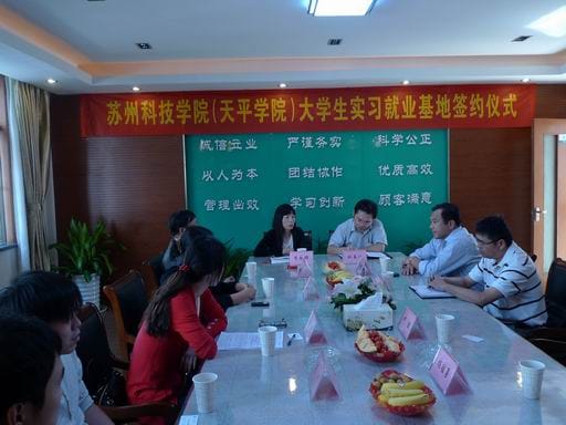 最后,天平學院書記李依群與我公司總經(jīng)理姚春江代表雙方單位簽訂了《共建就業(yè)實習基地協(xié)議書》,李書記同時將“蘇州科技學院天平學院就業(yè)實習基地”的銅牌授予了公司。根據(jù)協(xié)議,企業(yè)可根據(jù)自身狀況為雙方開展實習就業(yè)活動。企業(yè)舉辦公開人才招聘活動,在同等條件下學院的學生可優(yōu)先參加。學院也將優(yōu)先提供企業(yè)當年應屆畢業(yè)生資源,邀請企業(yè)優(yōu)先進入學院舉辦的應屆畢業(yè)生供需見面會選拔優(yōu)秀人才。